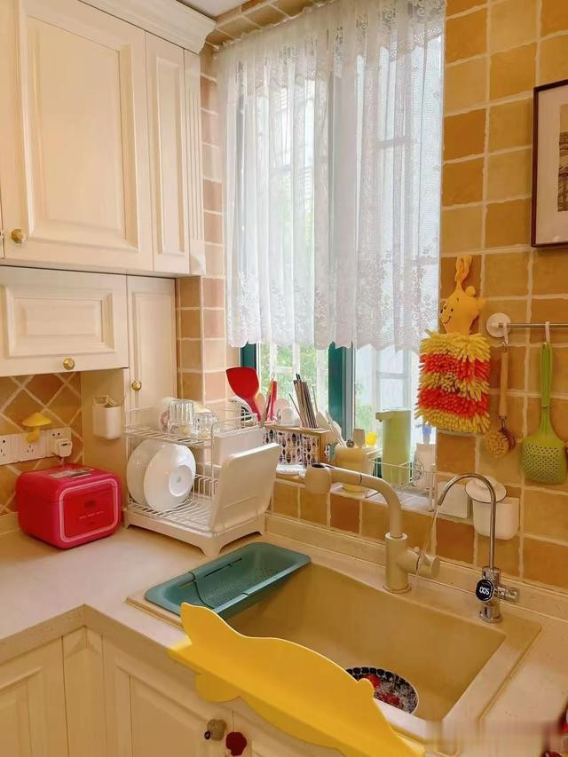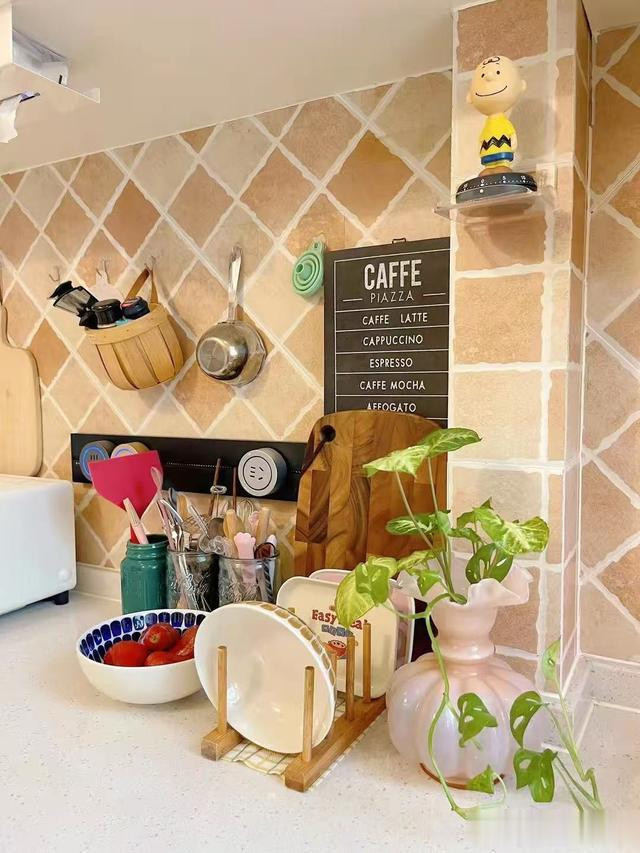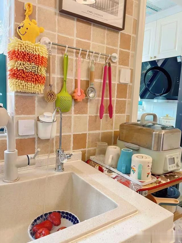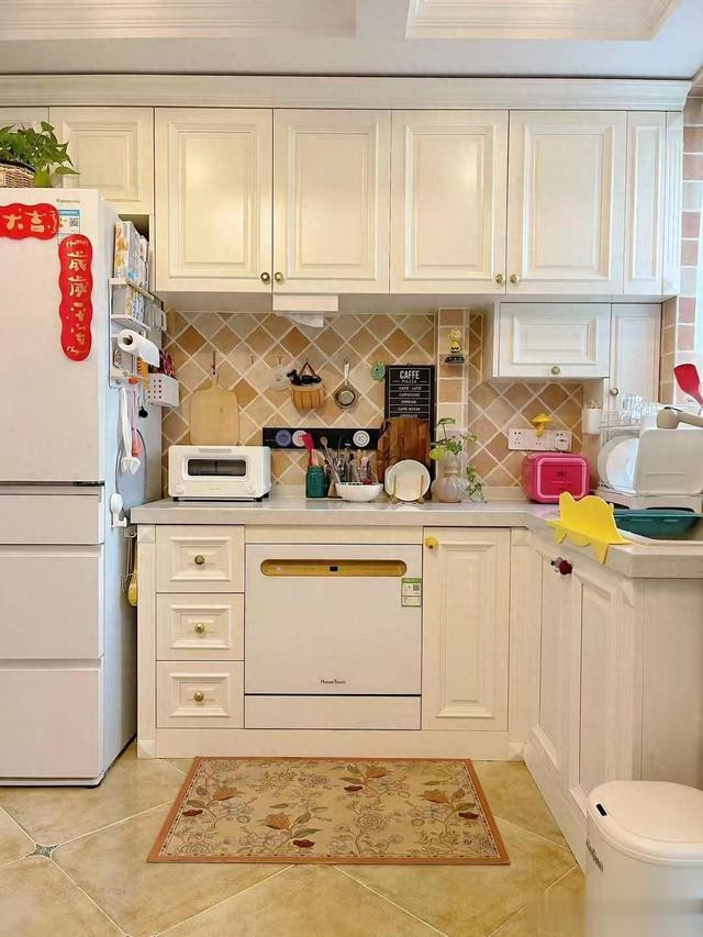 增加了上墙的收纳,小的工具能上墙的都做了上墙的处理,厨房的橱柜是明亮的奶白色,整个空间也显得更加的明亮宽敞。