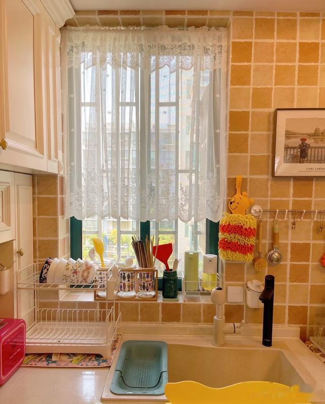 因为天天都要做饭,厨房的使用频率还是相当高的,地面的地砖选择的是很耐脏的复古砖,非常的好打理。